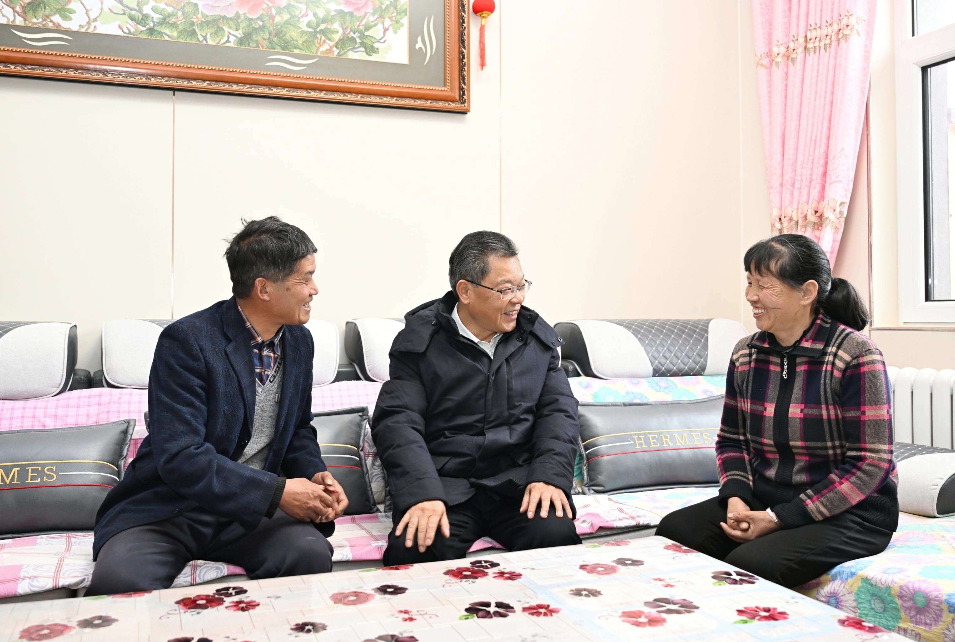 在马坡乡马莲滩村、新营镇八门寺村的集中安置点,任振鹤实地察看安置点建设及群众搬迁入住等情况,走进群众新居,看望慰问受灾群众,向大家致以新年的美好祝福,与他们亲切交谈,详细了解房屋装修、产业就业等情况。他指出,当前,榆中县灾后集中安置房建设任务已全面完成,受灾群众住进了安全、美丽、宜居的新家。搬进新居不是终点,而是新的起点。要切实做好安置点后续建设工作,逐步提高基础设施完备度、公共服务便利度、人居环境舒适度,把家园建设得更加美好。要大力发展设施农业,因地制宜发展高原夏菜等富民产业,扎实推进乡村全面振兴,让群众既安居又乐业,朝着共同富裕的方向稳步前进。要以学习运用“千万工程”经验为引领,总结好、运用好灾后恢复重建的路径、模式,建设宜居宜业和美乡村,加快农业农村现代化。