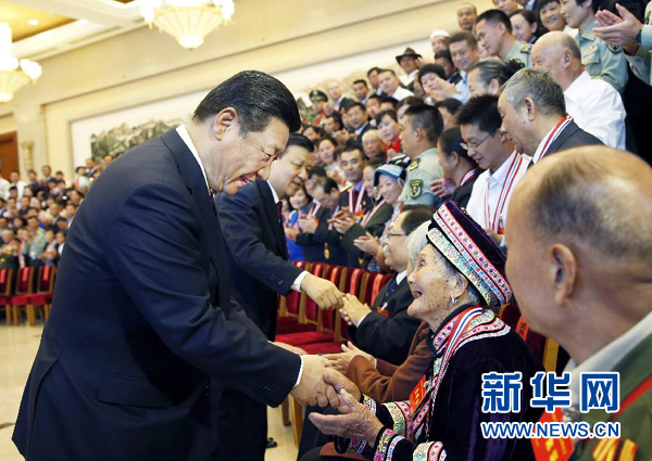 见到出席会议的年逾90的龚全珍老人,习近平饱含深情地说,我向大家介绍全国道德模范龚全珍同志,她是老将军甘祖昌同志的夫人。甘祖昌同志是江西老红军、新中国的开国将军,但他坚持回农村当农民,龚全珍同志也随甘祖昌同志一起回到农村艰苦奋斗。半个多世纪过去了,龚全珍同志始终保持艰苦奋斗精神,并当选了全国道德模范,出席我们今天的会议,我感到很欣慰。我向龚全珍同志致以崇高的敬意。我们要把艰苦奋斗精神一代一代传承下去。这时,全场响起了热烈的掌声。