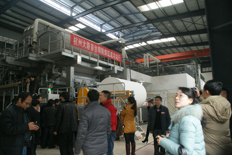 杭州大路实业有限公司屠绵秀董事长介绍:公司经过六年的努力,生产了五台高速卫生纸机,经过技术创新和用户的技术支持。对高速卫生纸机的产品开发、生产、安装和调试初步积累了一些经验。钢制烘缸与铸铁烘缸相比,更加节能、安全性更高,沟槽结构导热面积增加,传热更高效、纸的质量更加优质,目前公司钢制烘缸已申请发明专利一项,实用新型专利一项。目前禾丰公司配套的烘缸是该公司的首只钢制烘缸,出口越南的钢制烘缸也正在制作中,通过以后不断的制造与使用,该公司在钢制烘缸方面的经验会不断总结,质量会持续提高。