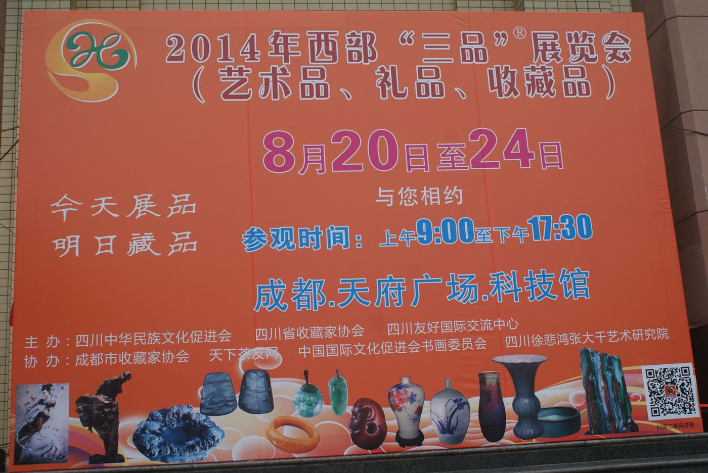 由四川中华民族文化促进会,四川省收藏家协会,四川友好国际文化交流中心共同主办的2014年西部国际艺术品、礼品、收藏品展览会于2014年8月20日——24日在四川科技馆举行。